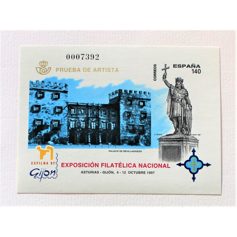 PRUEBA DE ARTISTA DEDICADA AL CUARTO CENTENARIO DE LA PLAZA MAYOR DE MADRID.REPRESENTA LA FACHADA DE LA CASA DE LA PANADERIA,CON EL SELLO DE 5 € DE FELIPE III A CABALLO,EN ORO DE 24 QUILATES,SOBRE BASE DE PLATA DE LEY.