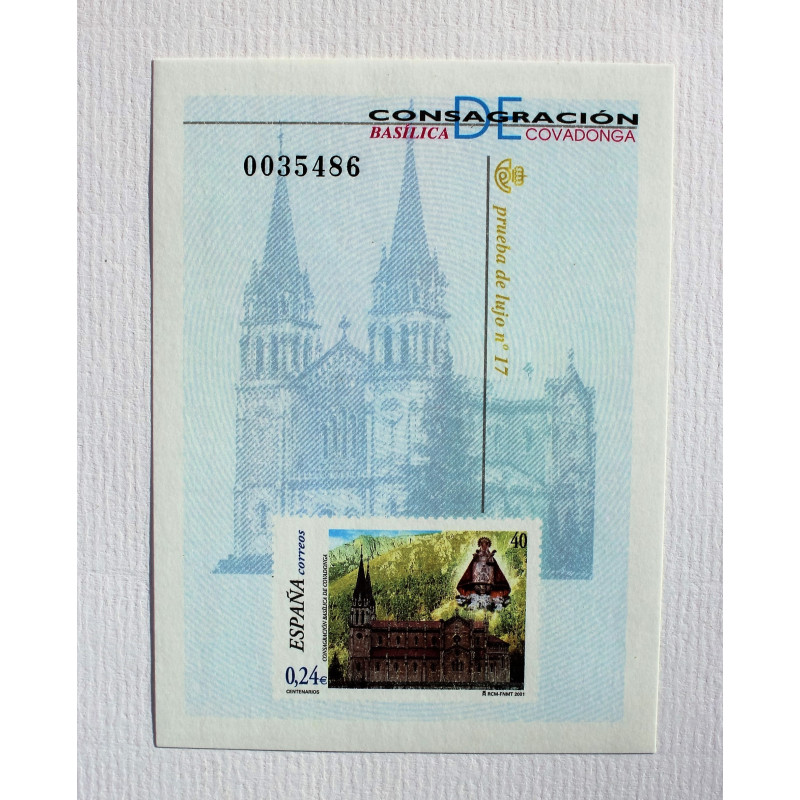 PRUEBA DE ARTISTA DEDICADA AL CUARTO CENTENARIO DE LA PLAZA MAYOR DE MADRID.REPRESENTA LA FACHADA DE LA CASA DE LA PANADERIA,CON EL SELLO DE 5 € DE FELIPE III A CABALLO,EN ORO DE 24 QUILATES,SOBRE BASE DE PLATA DE LEY.