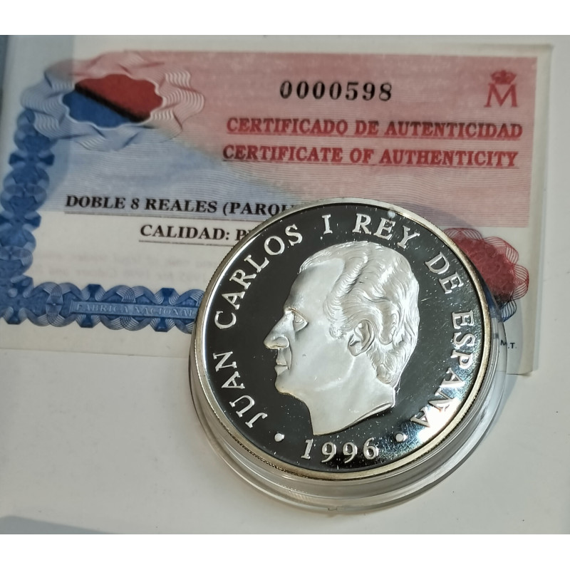 Moneda de doble 8 reales de 5.000 pesetas del año 1996.