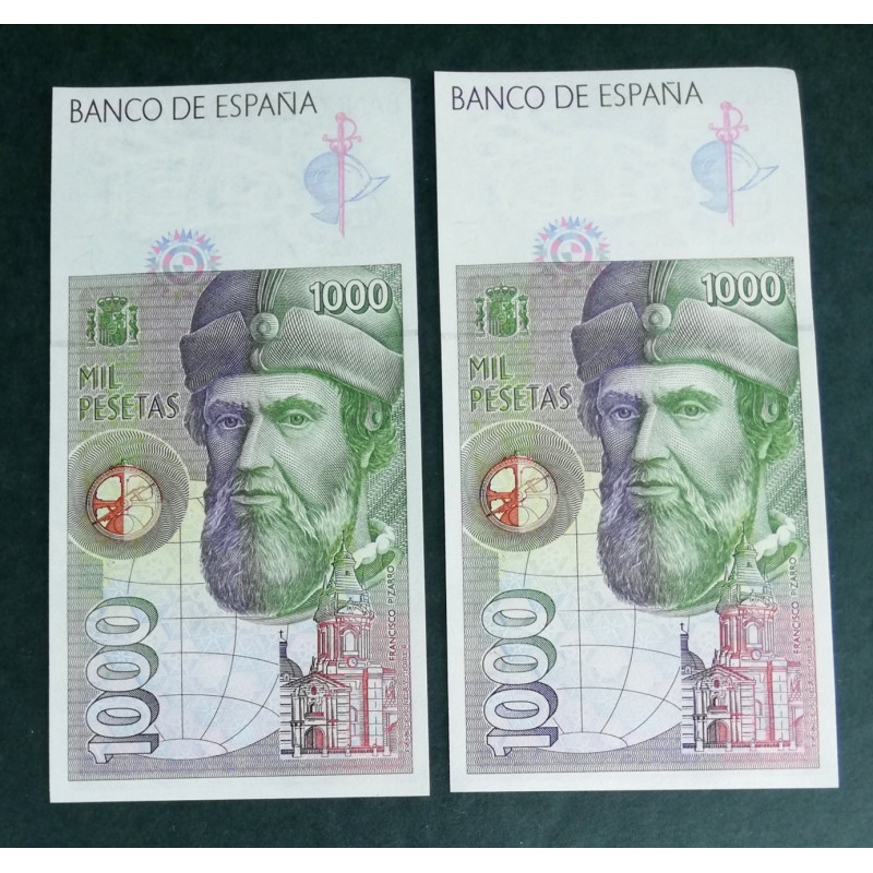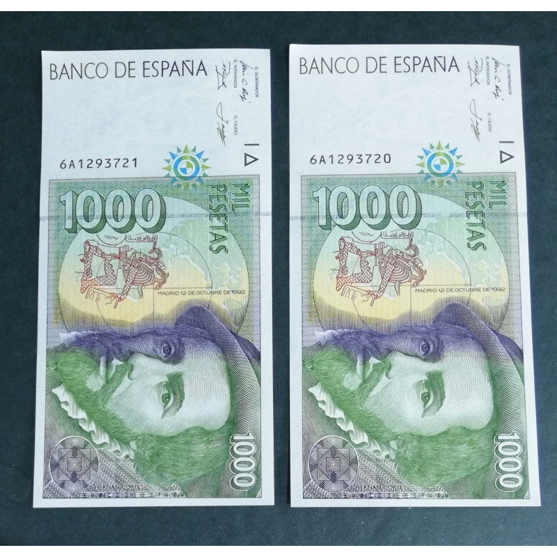 PAREJA DE BILLETES CORRELATIVOS DE 1000 PESETAS DEL 12 DE OCTUBRE DE 1992
