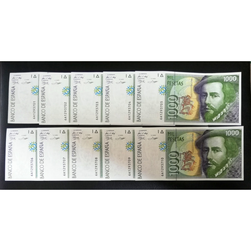 10 BILLETES CORRELATIVOS DEL BANCO DE ESPAÑA DE 1.000 PESETAS DE 1992 .FRANCISCO PIZARRO