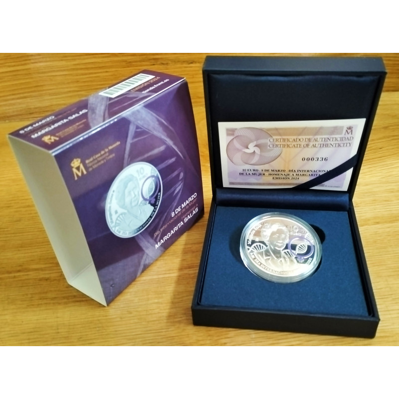 Moneda de 10 euros de plata de Margarita Salas, bioquímica e investigadora.