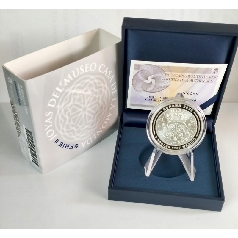 Moneda de 10 euros que conmemora y recuerda la moneda de 8 reales de 1. 737 acuñada en la ceca de México, conocido como" el dólar español ".