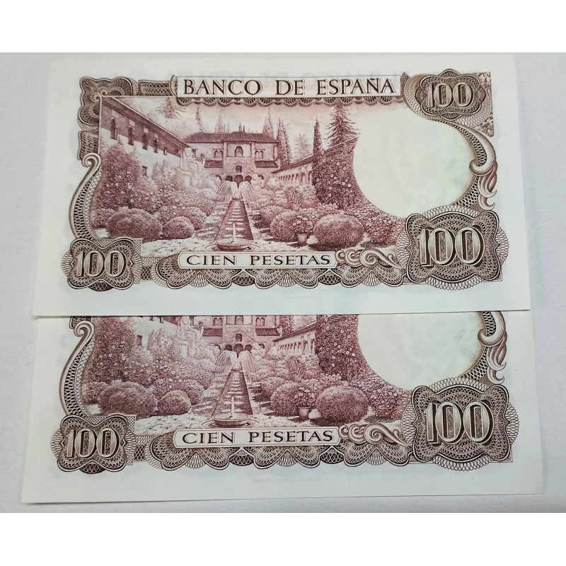 Pareja correlativa de billetes de 100 pesetas del 17 de noviembre de 1970