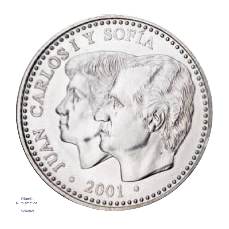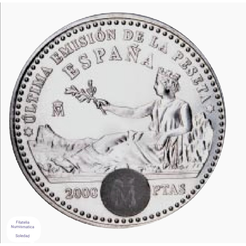 Moneda de plata de 2.000 pesetas de la última emisión de la peseta 2001.