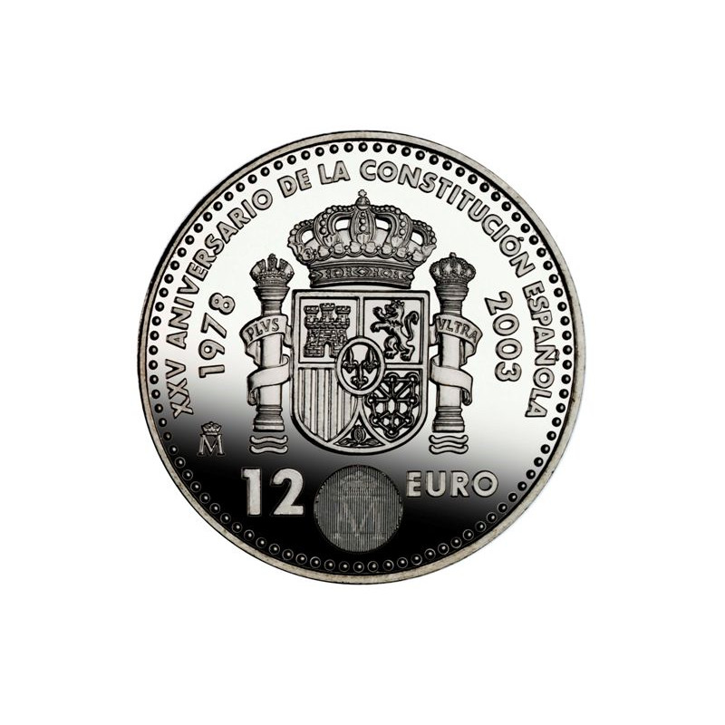 Moneda de plata de 12 euros dedicada al 25 aniversario de la Constitución Española .
