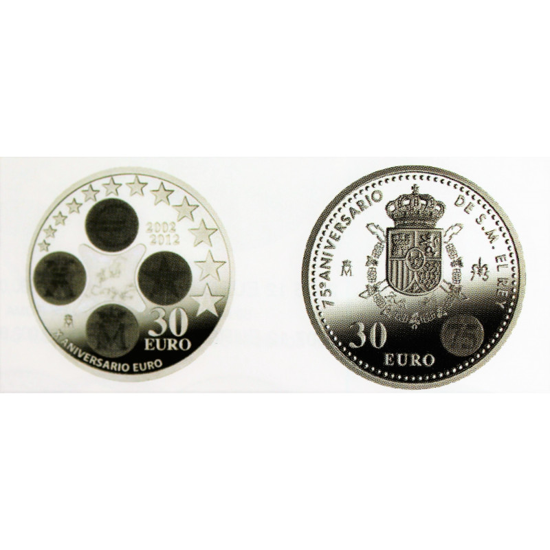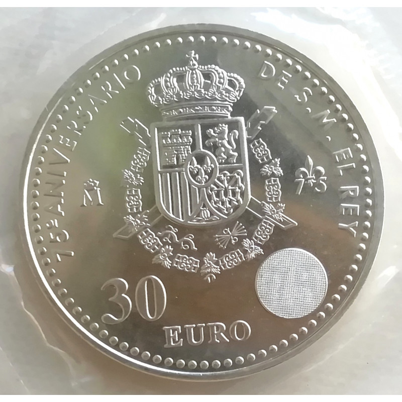 Moneda de 30 euros de plata dedicada al 75 aniversario de su Majestad el Rey Juan Carlos I