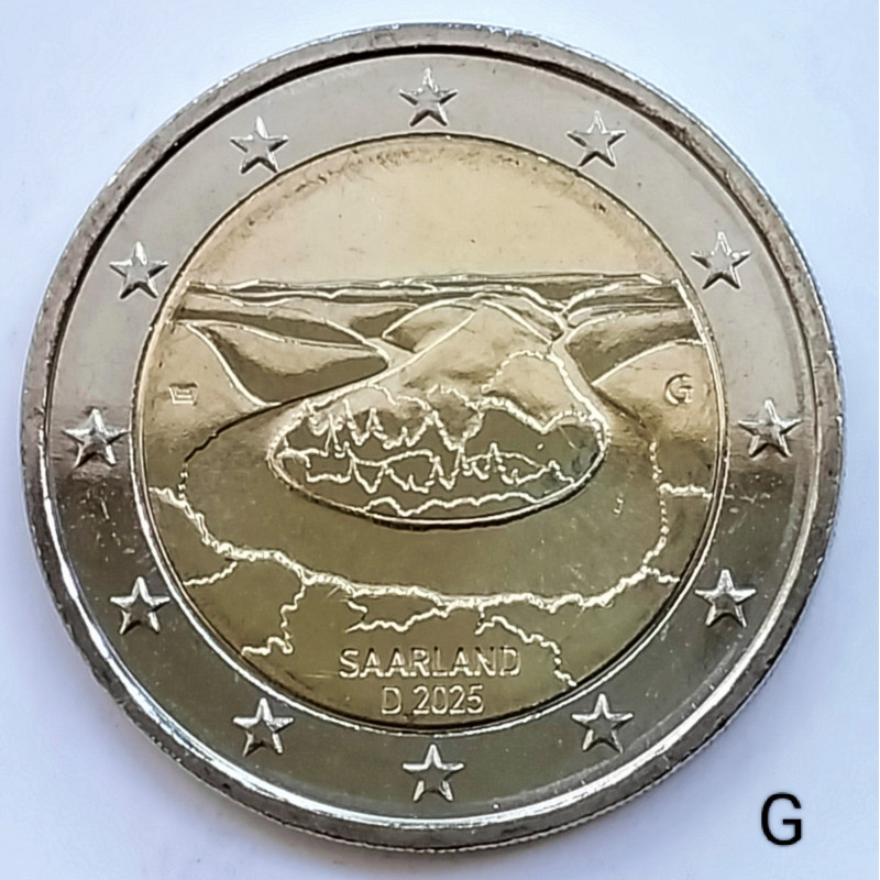 Moneda de 2 euros de Alemania de 2025 del meandro del Sarre.Saarland.