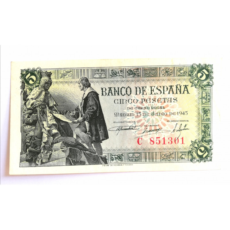 BILLETE DE 5 PESETAS DEL 5 DE JUNIO DE 1945.