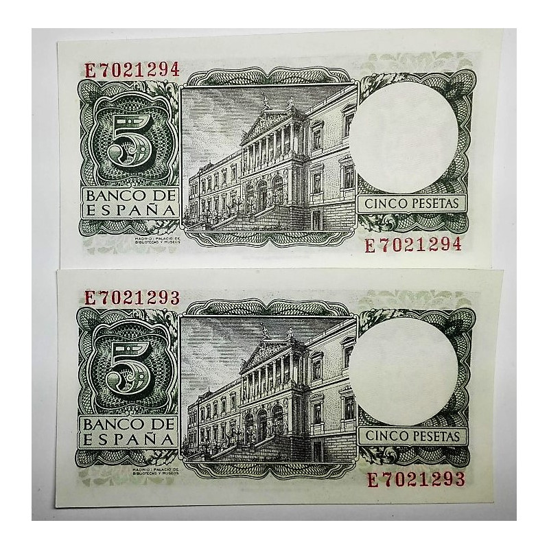 PAREJA DE BILLETES DE 5 PESETAS DEL 22 JULIO DE 1954