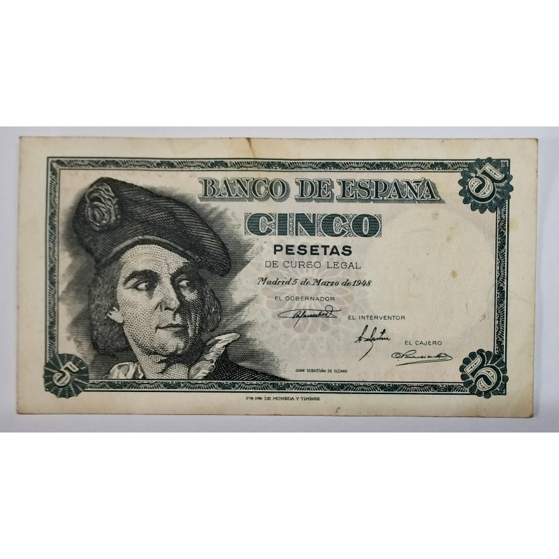 Billete de 5 pesetas de Juan Sebastián Elcano.