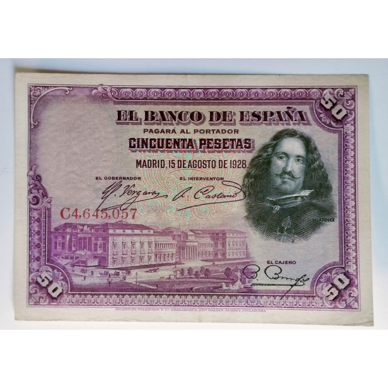 BILLETE DEL BANCO DE ESPAÑA DE 50 PESETAS DEL 15 DE AGOSTO 1928.