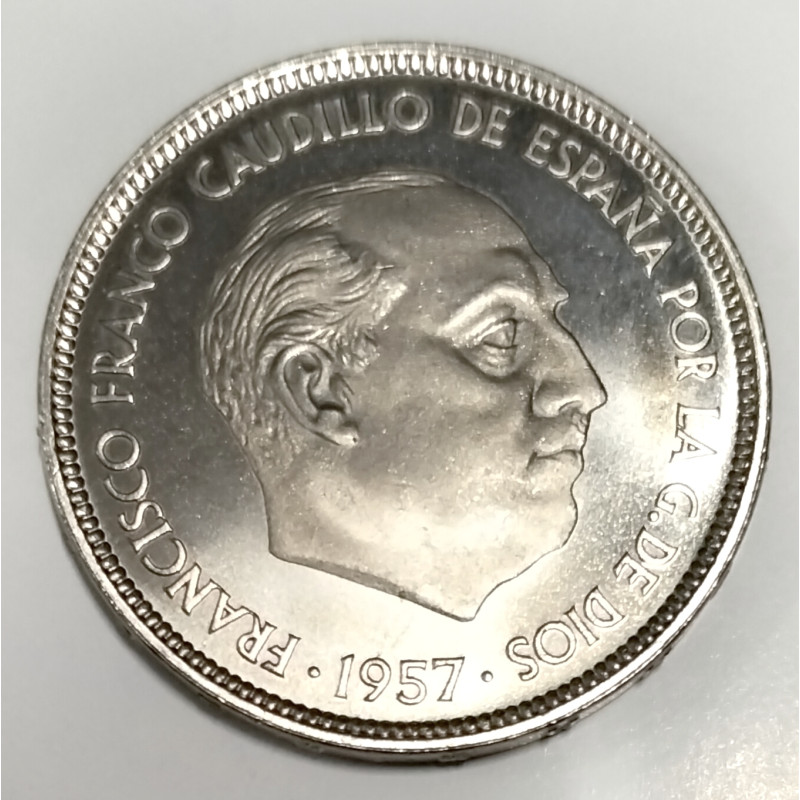 Moneda de 50 pesetas de 1957 *74 del Estado Español