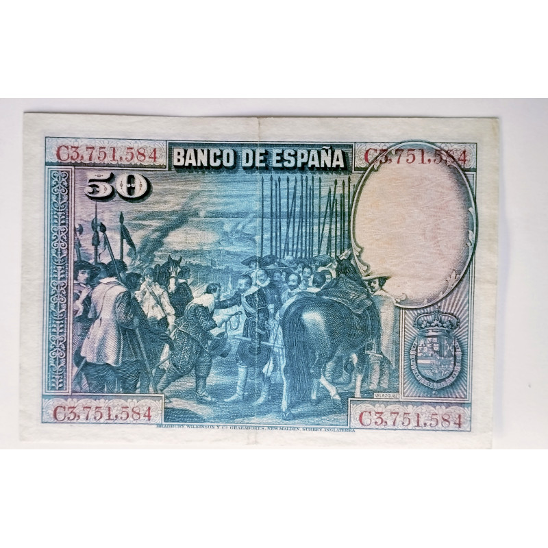 BILLETE DEL BANCO DE ESPAÑA DE 50 PESETAS DEL 15 DE AGOSTO 1928.