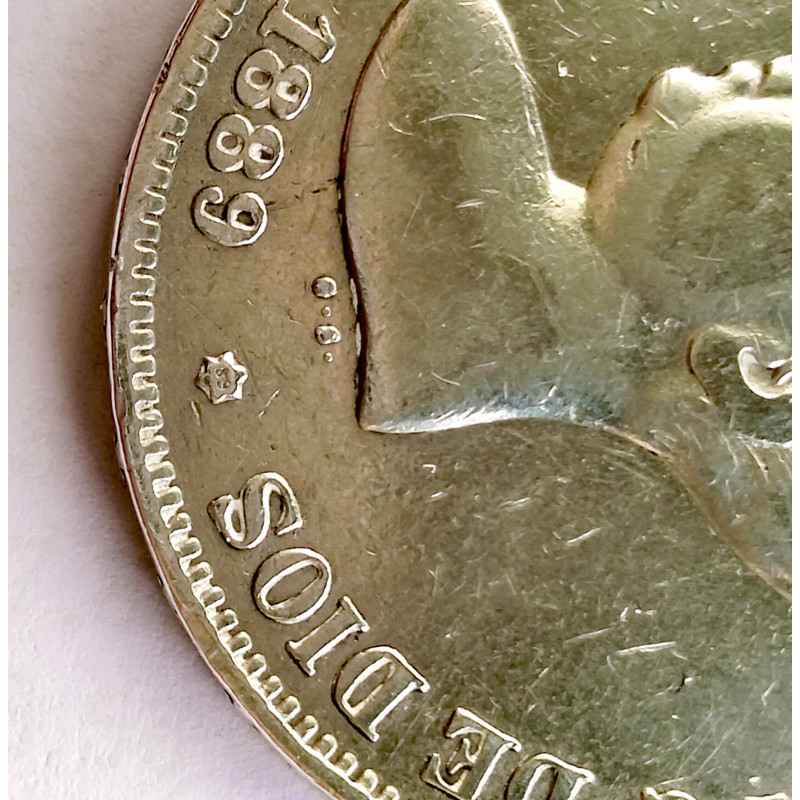 Moneda de 5 pesetas de Alfonso XIII de 1889*89