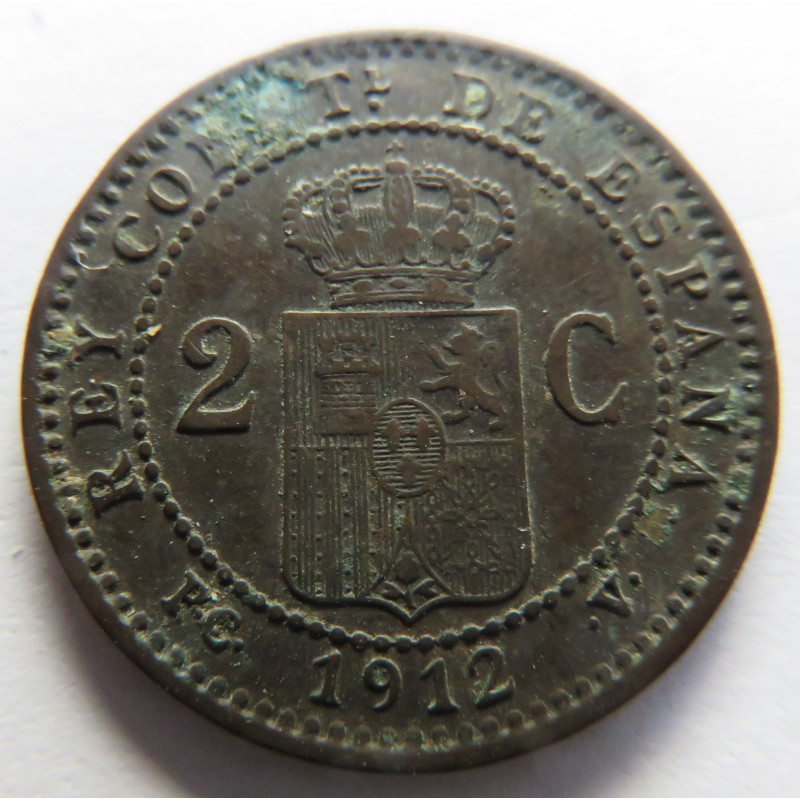 Moneda de cobre de 1912 de 2 céntimos de Alfonso XIII 1912*12