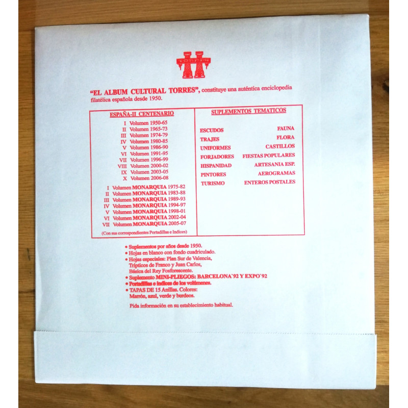 Suplemento Año completo de Torres para todos los sellos, hojas bloque, entero postales, hojas prueba y homenaje filatelico .