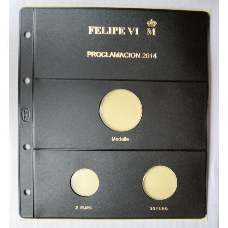 Funda para 2 monedas y 1 medalla de la proclamación de Felipe VI .