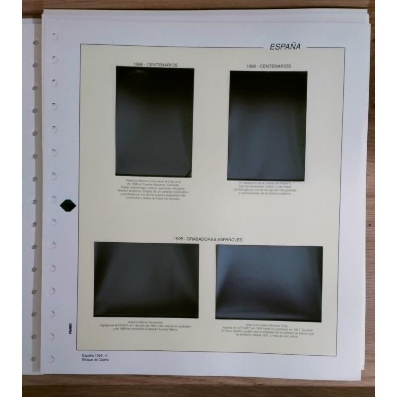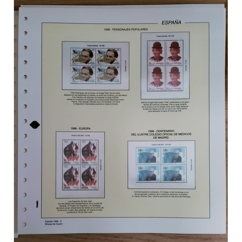 Suplemento Filabo en bloque de 4 para los sellos del año 1998.