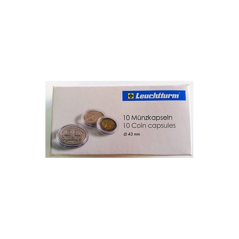 CAJA DE 10 CAPSULAS PARA MONEDAS DE 43 mm.