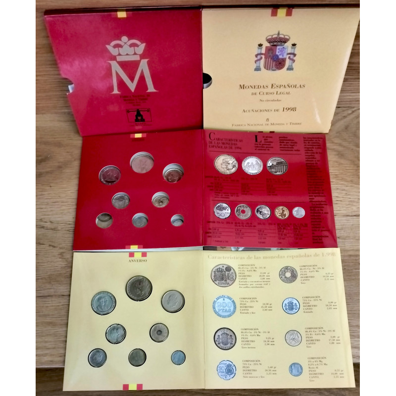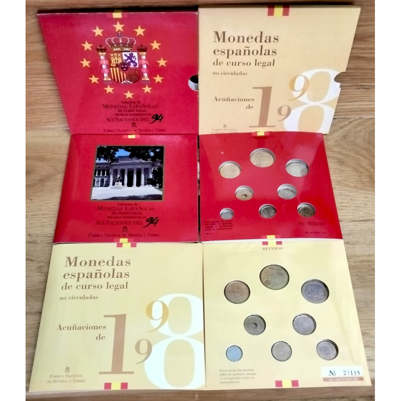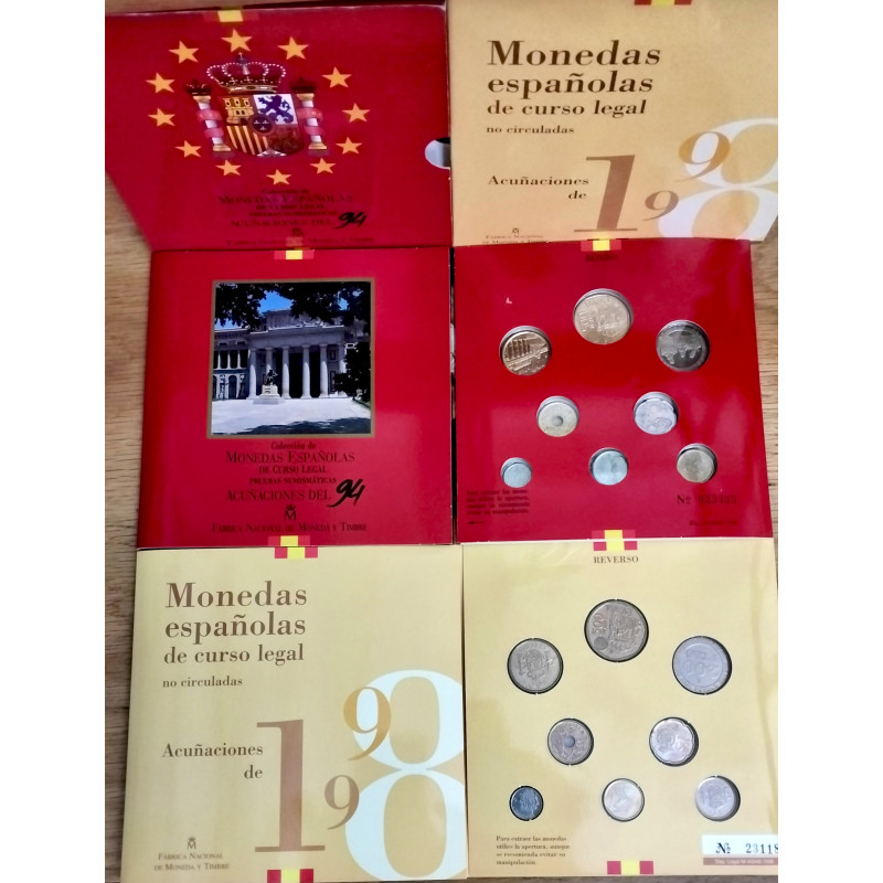 2 Carteras oficiales de la Fábrica Nacional de Moneda y Timbre de los años 1994 y 1998.