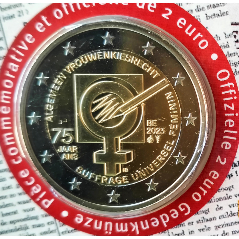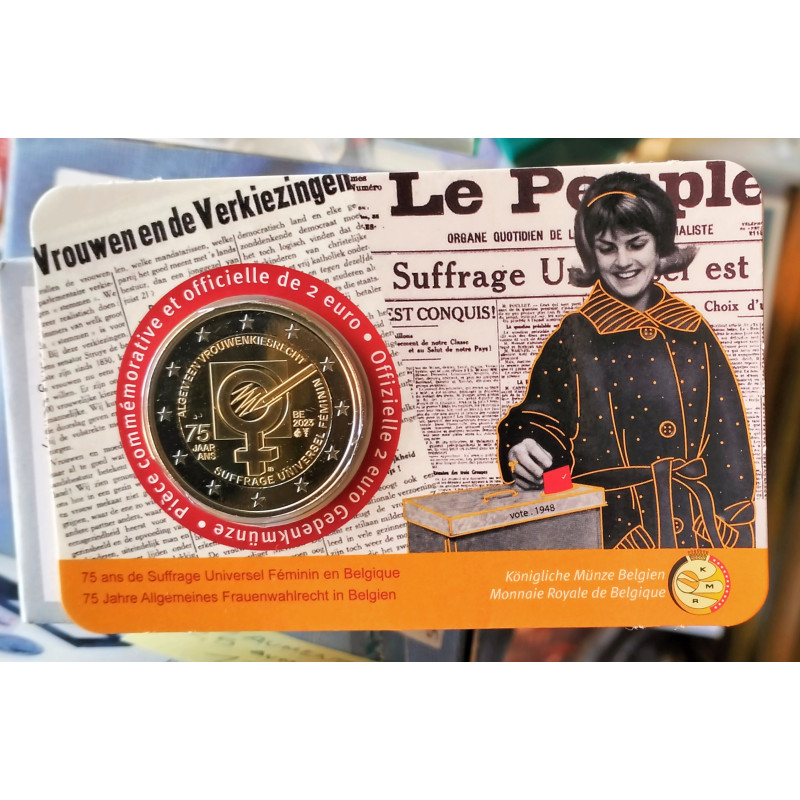 Moneda de 2 euros conmemorativa bimetálica del 75 aniversario del sufragio universal.
