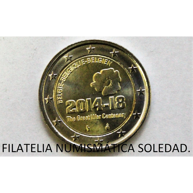 2 € DE BELGICA CONMEMORA LOS 100 AÑOS DEL COMIENZO DE LA GUERRA MUNDIAL.