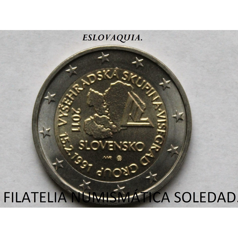 2 € DE ESLOVAQUIA DEL VIGÉSIMO ANIVERSARIO DE LA CREACIÓN DL GRUPO VISEGRADO.