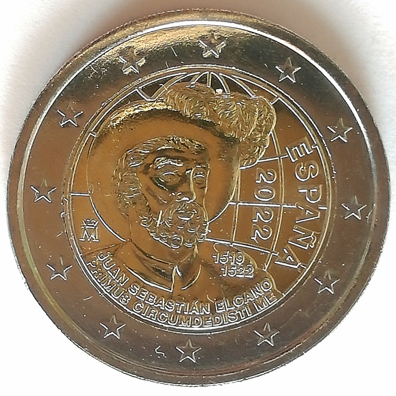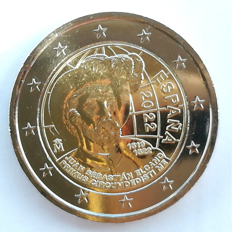 Moneda bimetalica de 2 euros conmemorativa de España 2022, dedicada al V Centenario de la vuelta al mundo de Elcano.