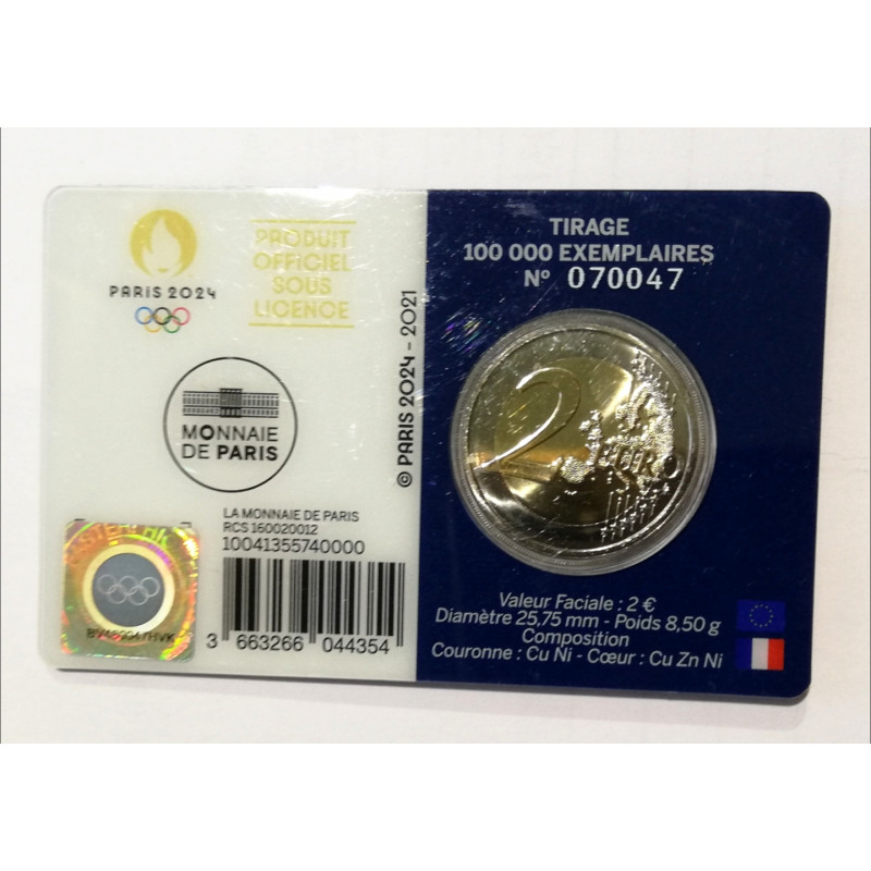 Moneda de 2 € conmemorativa de Francia 2021 dedicada a los juegos olimpicos de Francia.