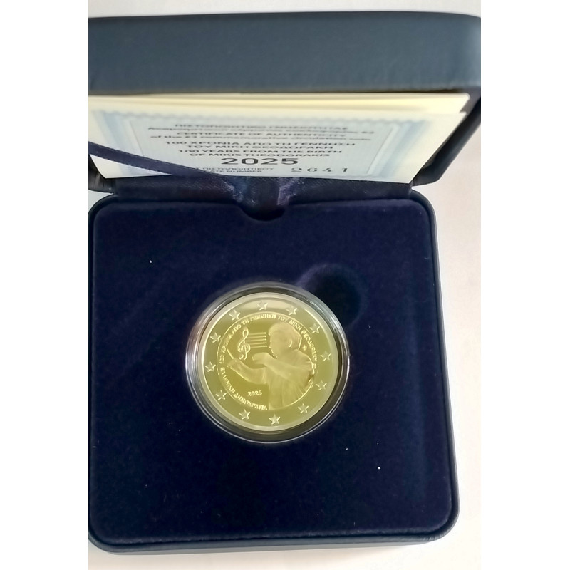 Moneda conmemorativa de Grecia del año 2025 dedicada al compositor y director Mikis Theodorakis por su centenario de su nacimiento.