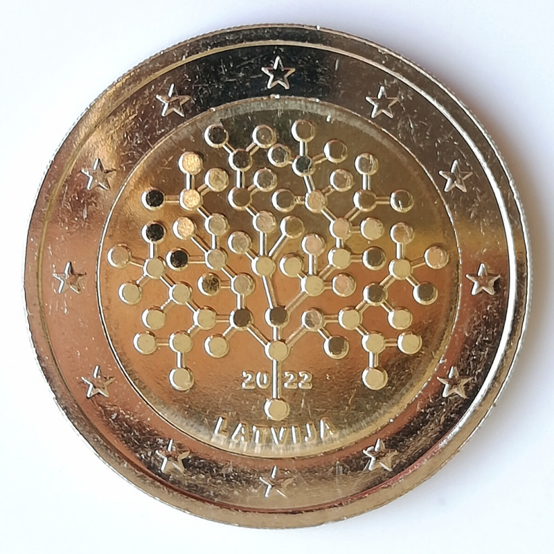 Moneda de 2 euros conmemorativa de Letonia de 2022.