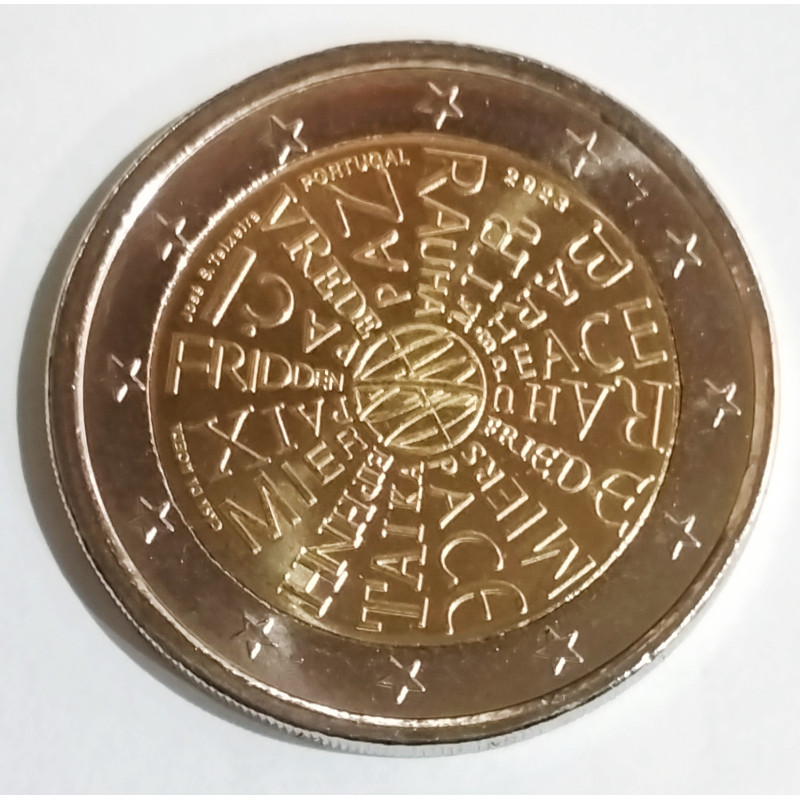 Moneda bimetalica de 2 euros conmemorativa de Portugal ,Paz entre las naciones y convivencia amistosa del año 2023