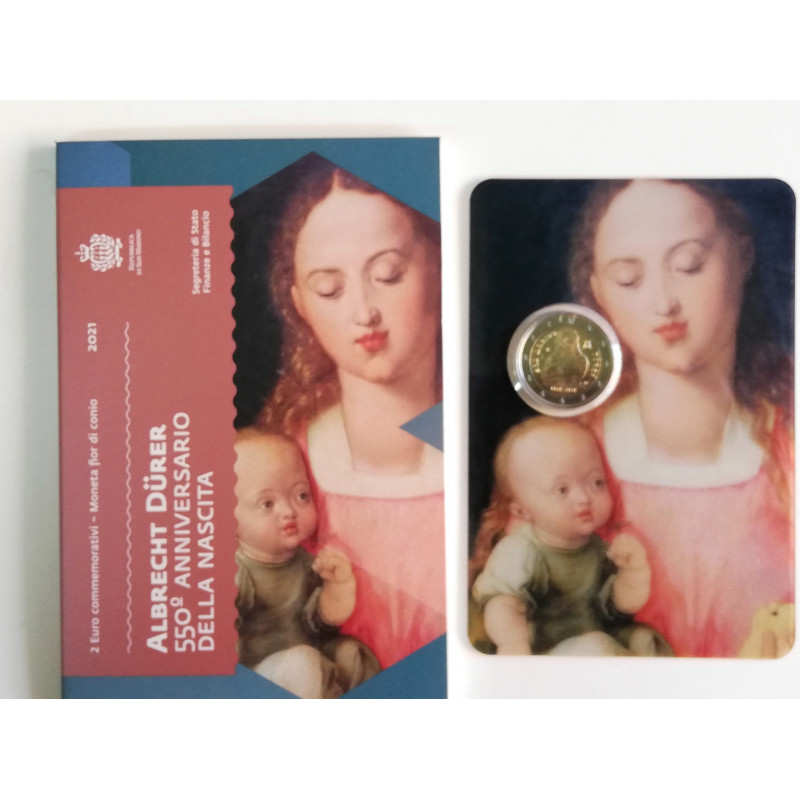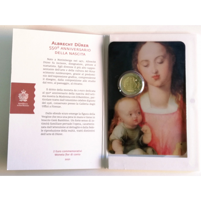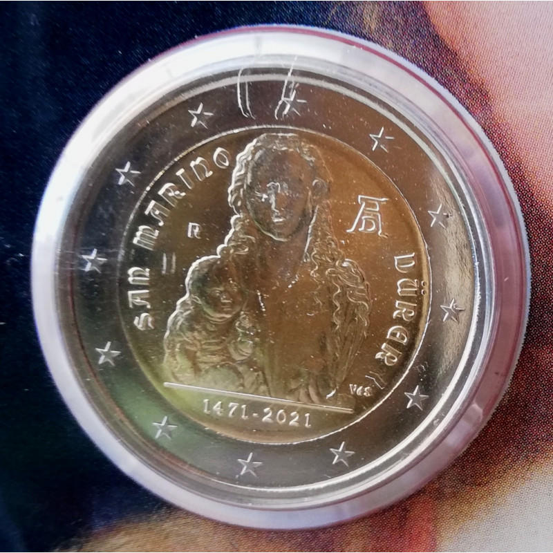 Moneda de 2 euros conmemorativa bimetalica de San Marino, dedicada a Albrecht Durero.