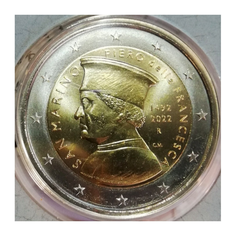 Moneda de 2 euros conmemorativa bimetalica de San Marino, dedicada a Piero de la Francesca