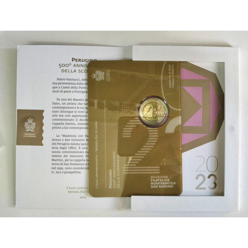 Moneda de 2 euros conmemorativa bimetalica de San Marino, dedicada a Perugino, Pietro Vannucci.