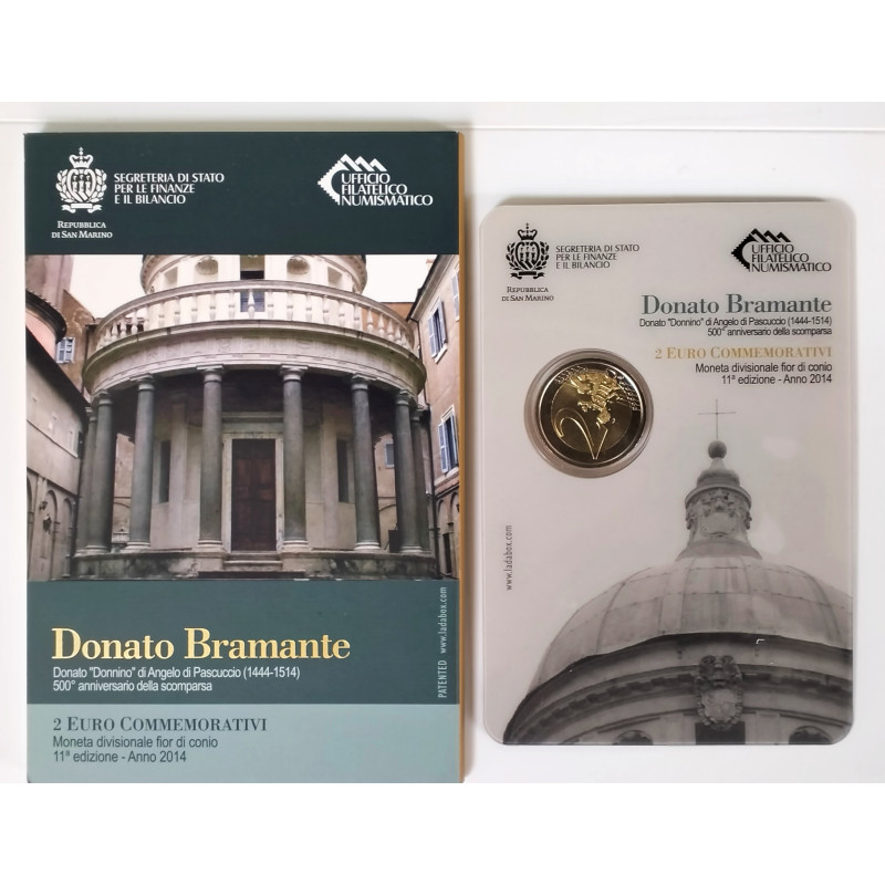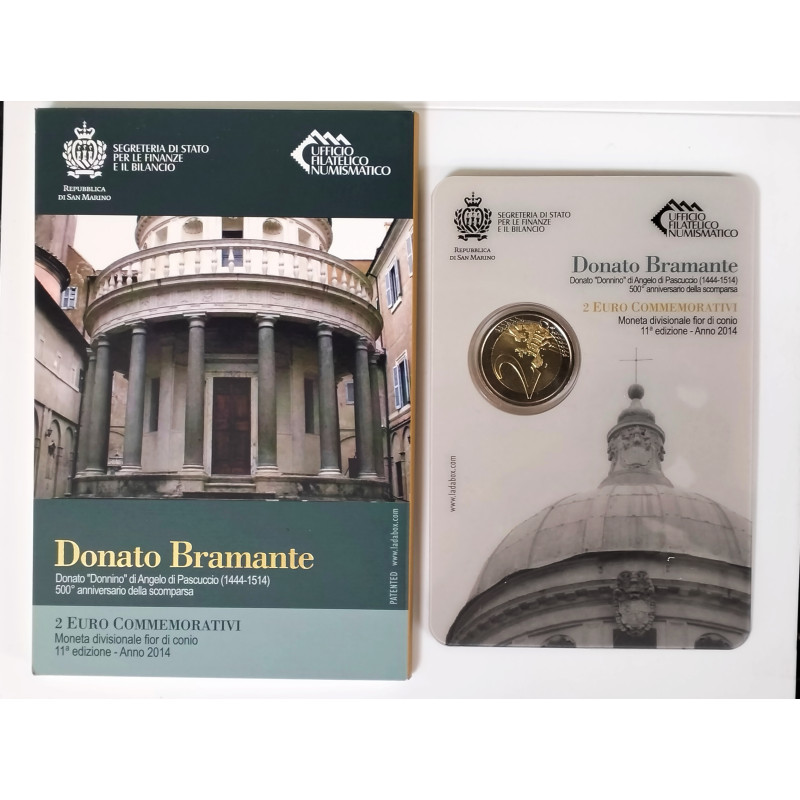 2 € conmemorativos de San Marino dedicado a la figura de Donato Bramante 1444-1514