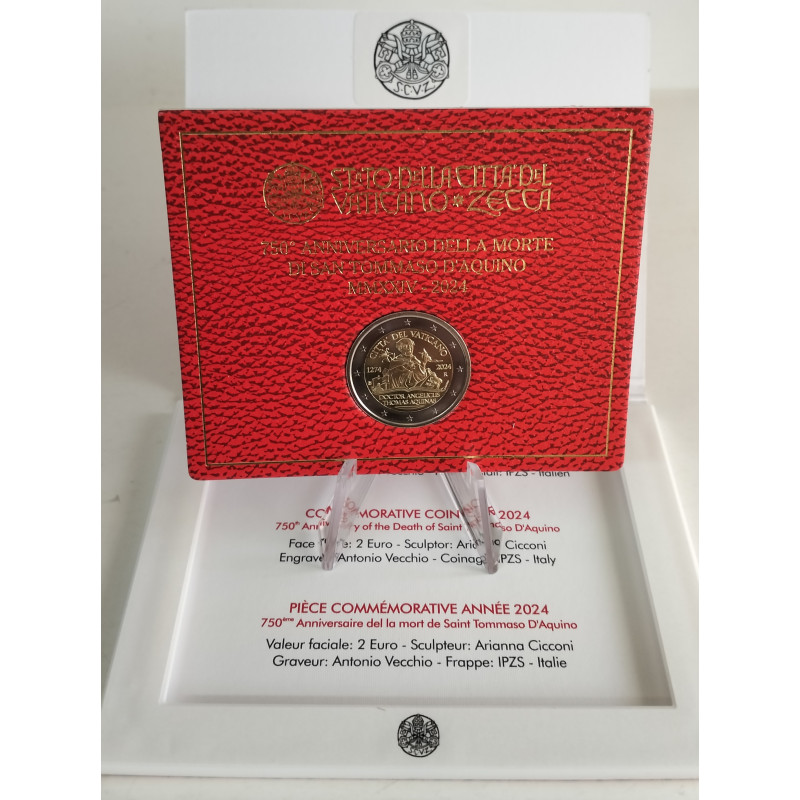 Moneda de 2 euros de Vaticano dedicado al 750 aniversario de la muerte de Santo Tomás de Aquino