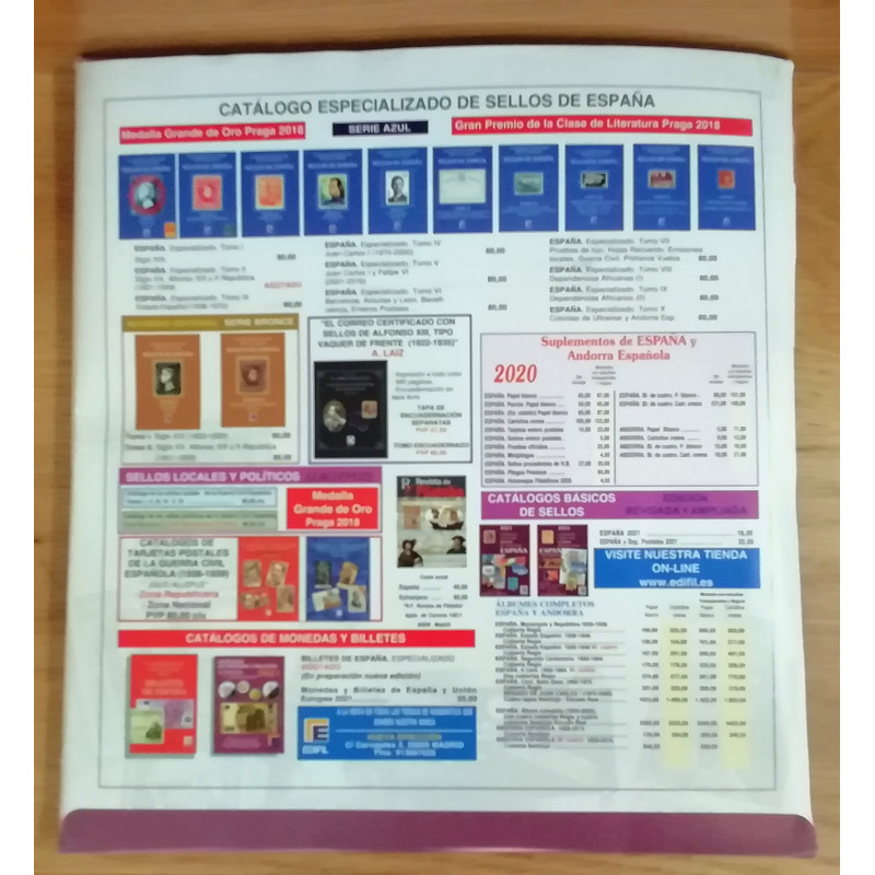 Suplemento Edifil España crema Canto dorado montado con estuches con fondo negro para los sellos y hojas bloque del año 2020.
