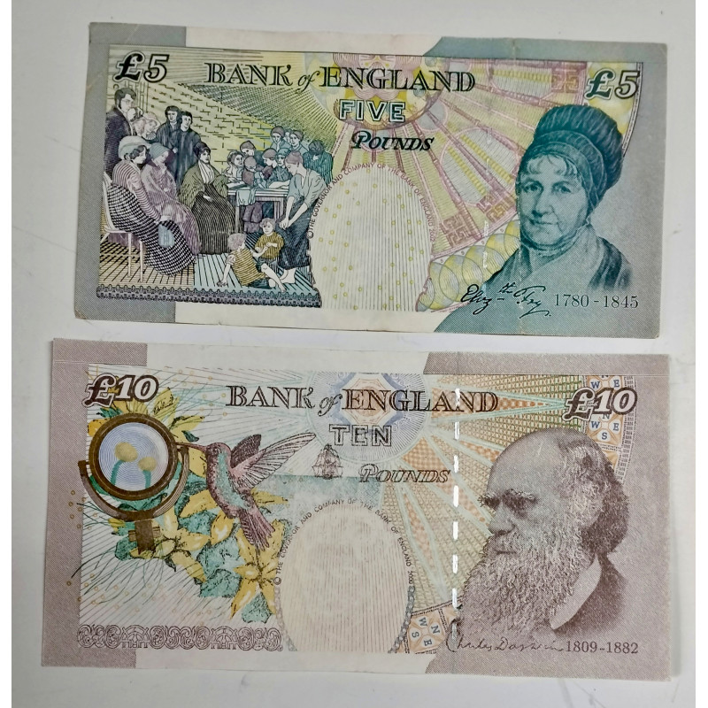 Billetes de 5 y 10 pounds de Inglaterra