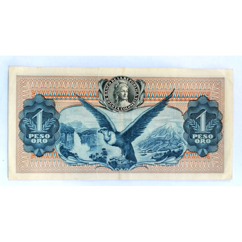 Billete de un peso de oro de Bogotá Colombia 7 de agosto de 1962