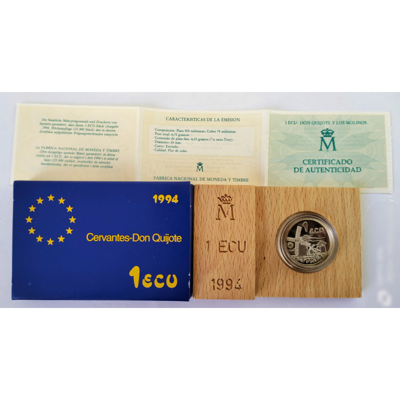 MONEDA DE 1 ECU EN PLATA DE 925 ML CON 6,72 GR DE PESO Y 24 MM DE DIÁMETRO.