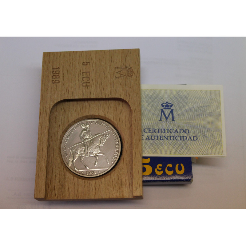 Moneda de 5 Ecus de plata de 925 ml y 33,62 gramos de peso.