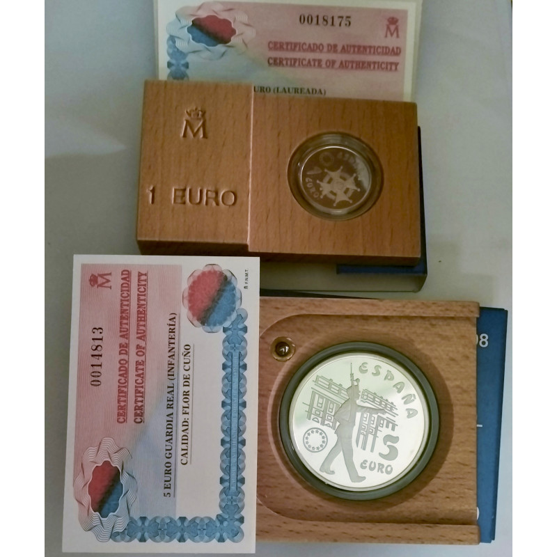 1 euro y 5 euros en plata del año 1998