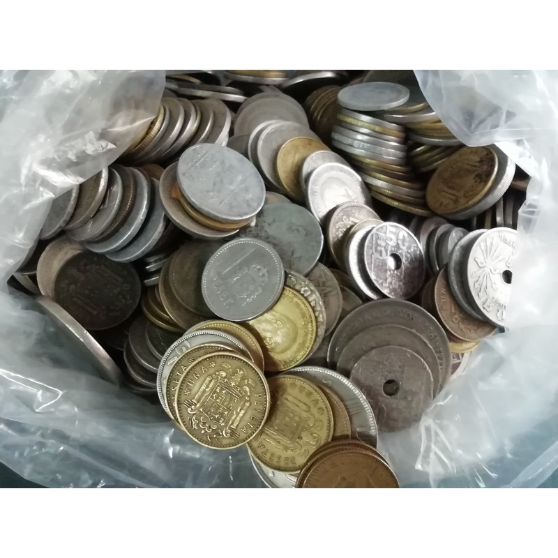 1 kilo de monedas del Estado de Español usadas y variadas.