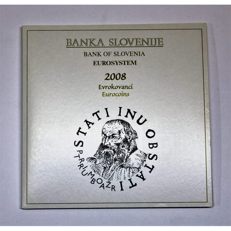 CARTERA OFICIAL DE COLECCIÓN COMPLETA DE 8 MONEDAS DE EURO DE ESLOVENIA 2008 Y MONEDA BIMETALICA DE 3 EUROS.