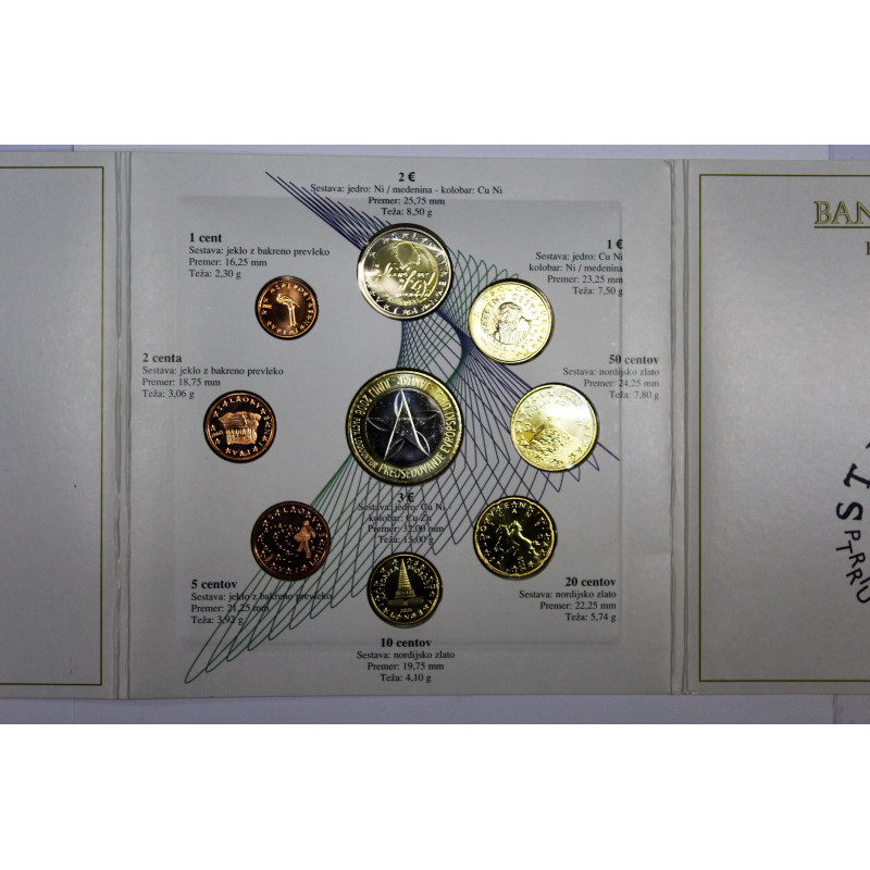 CARTERA COLECCIÓN COMPLETA SERIE OFICIAL DE EUROS DE ESLOVENIA 2008 Y MONEDA DE 3 EUROS BIMETALICA.