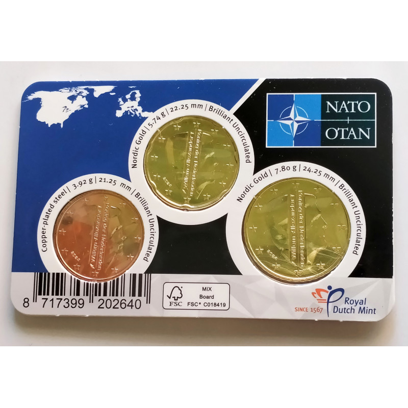 Coincard de Holanda con 3 monedas de 5,20 y 50 centimos de euro con motivo de la celebracion del 75 Aniversario de la ONU.