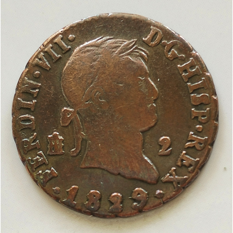 Moneda de 2 maravedís de Fernando VII de Segovia 1829