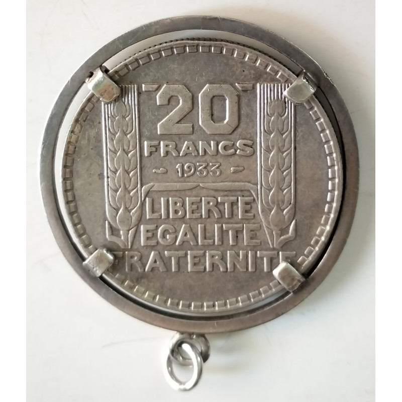 Moneda de 20 francos de plata de Francia del año 1933.